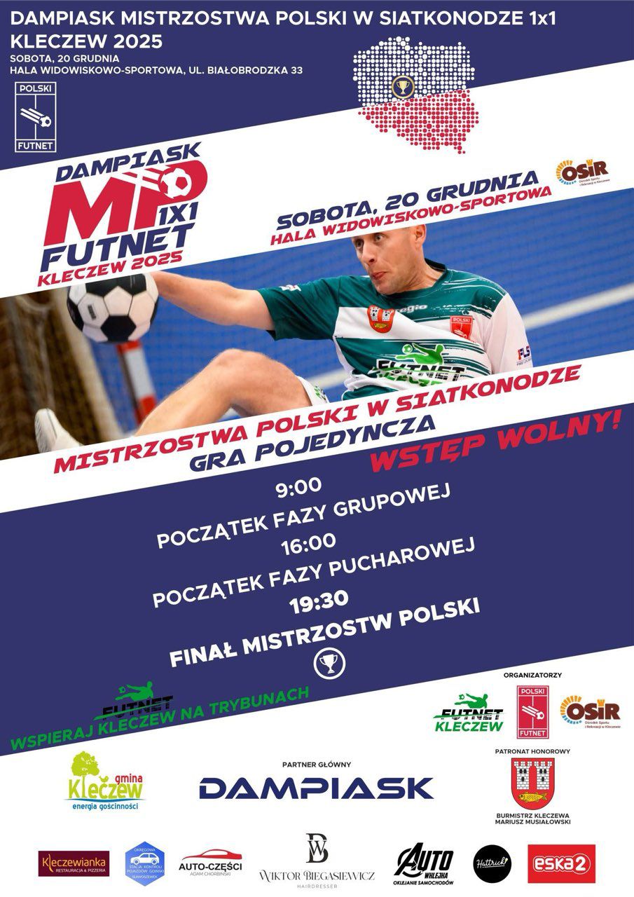 W sobotę o godzinie 9:00, w Kleczewie (powiat koniński) startują Dampiask Mistrzostwa Polski w Siatkonodze 1x1 - Kleczew 2025.